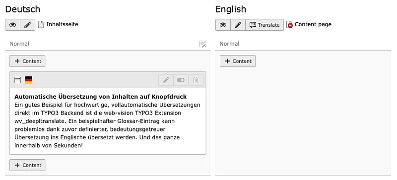 As soon as a TYPO3 website has been translated into several languages, editors want new pages and content to be translated automatically. Previously, this required the responsible editor to initiate the translation process manually, check the translated content and finally release it for publication. With the introduction of the auto-translate function, this process is now considerably simplified.