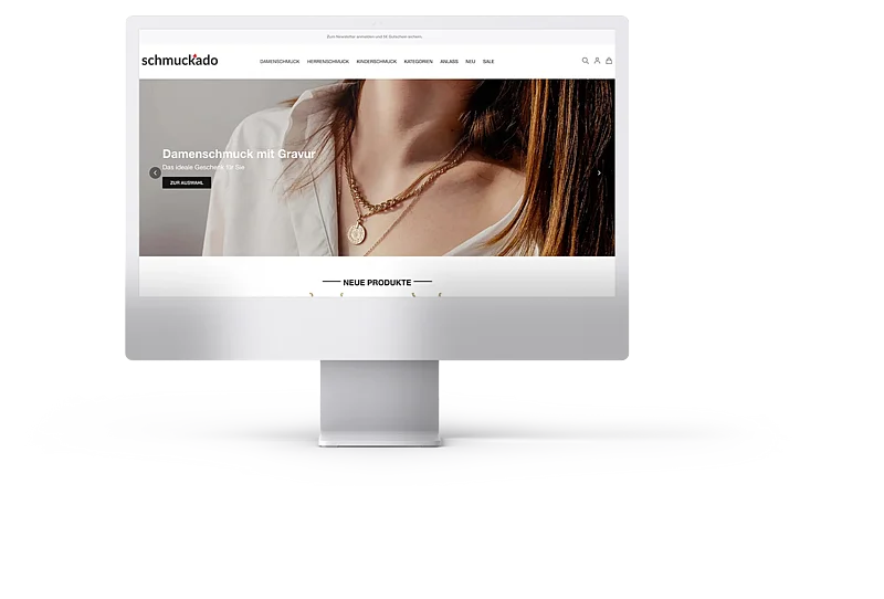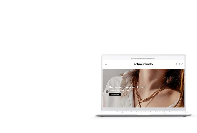 In April 2022, the new Magento 2 store for Schmuckado was launched. Schmuckado Stands for "jewelry, give away with engraving" and offers a wide product selection of customizable jewelry for him and her. The Magento 2 store runs on the basis of our Hyvä theme and impresses with appealing product presentation, clear navigation structures and ease of use.