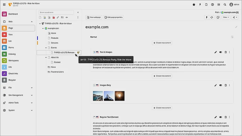 When you first log in to the backend of TYPO3 v13 LTS, you immediately notice the modernized design. Upon further exploration, it quickly becomes apparent that the administration interface has received numerous optimizations.