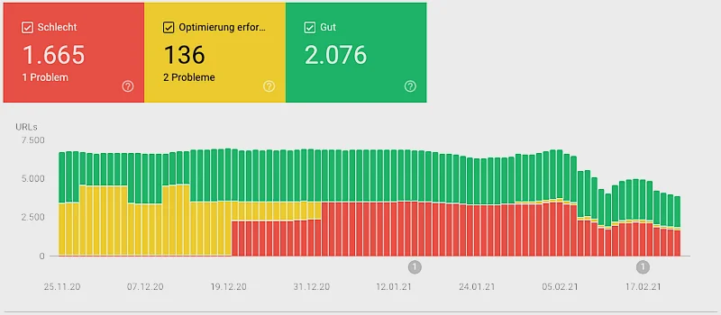 Im November 2020 hat Google dann einen Zeitplan für die "Web Core Vitals" veröffentlicht. Google räumt damit, ab Mai 2021, der Nutzerfreundlichkeit und besonders auch der Ladezeit einer Website einen hohen Stellenwert beim Ranking ein.